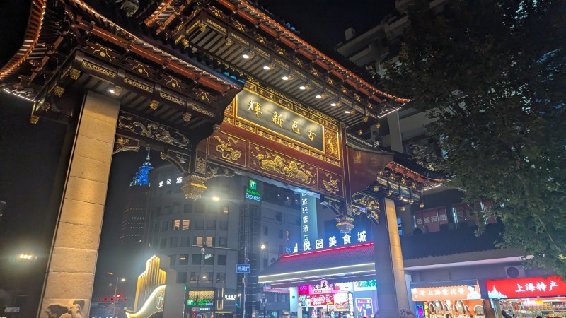 駅から地上に出ると目の前に豫園、というか正確には豫園商城の入口が見えました。