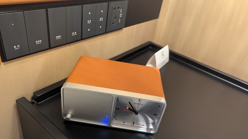GENEVAの時計&スピーカーがありました。Bluetoothで音楽も聴けるし、スマホを上に置けば充電もできます。いいね。