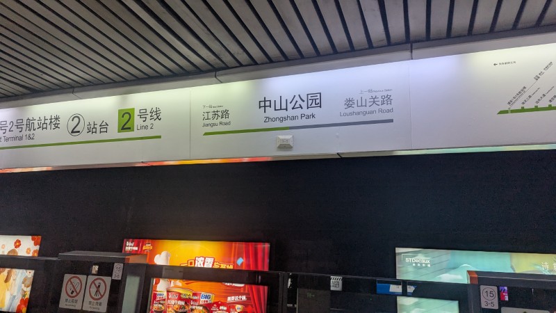 大世界駅から人民広場駅で地下鉄2号線に乗り換えて、中山公園駅に向かいます。