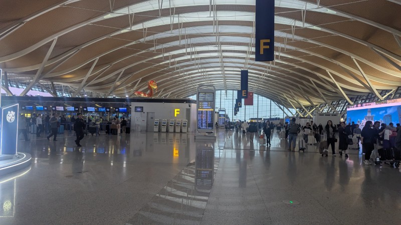 地下鉄2号線で空港へ。上海科技駅から50分ぐらいで到着。